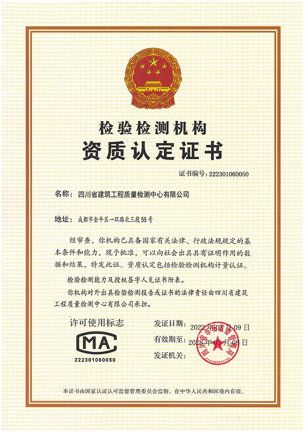 四川省建筑工程質量檢測中心有限公司前身是四川省建筑工程質量監督檢驗站,1994年四川省建委決定,在執行行業檢測任務時更名為“四川省建筑工程質量檢測中心”,于2001年8月31日在四川省工商行政管理局注冊為獨立法人的檢測機構,由四川省建筑科學研究院投資設立,其后于2018年12月27日更名為“四川省建筑工程質量檢測中心有限公司”。